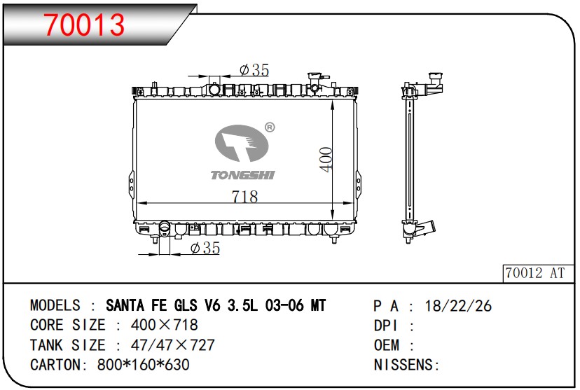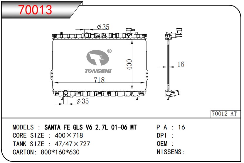 適用于奇瑞瑞虎(新款) MT散熱器 OEM : F1301000B1