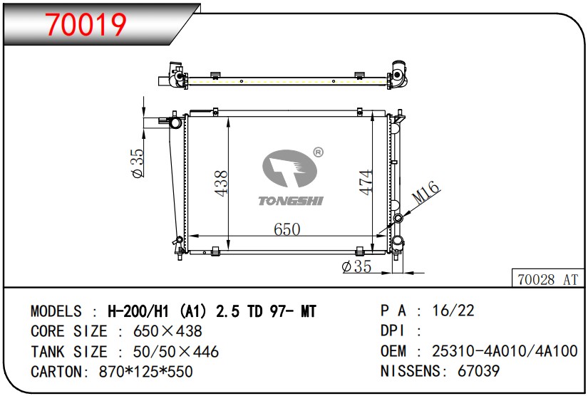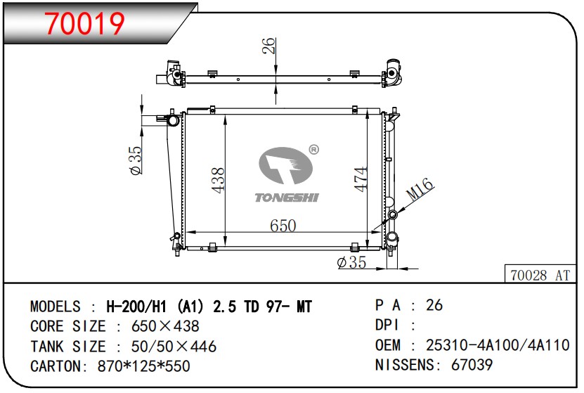 適用于奇瑞瑞虎(新款) MT散熱器 OEM : F1301000B1