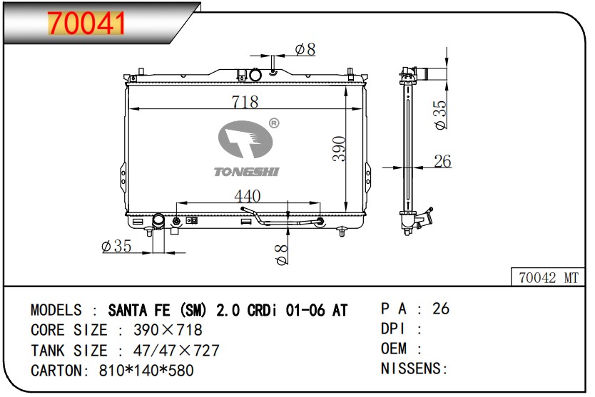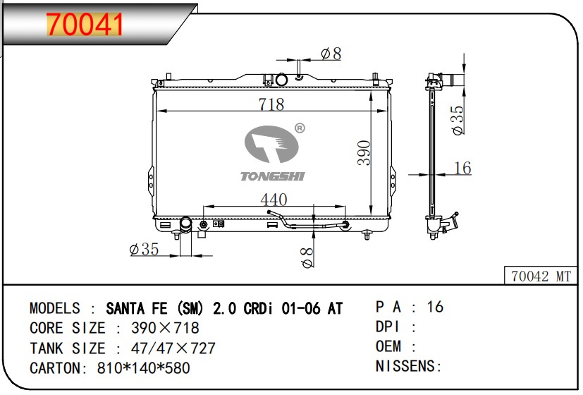 適用于奇瑞瑞虎(新款) MT散熱器 OEM : F1301000B1