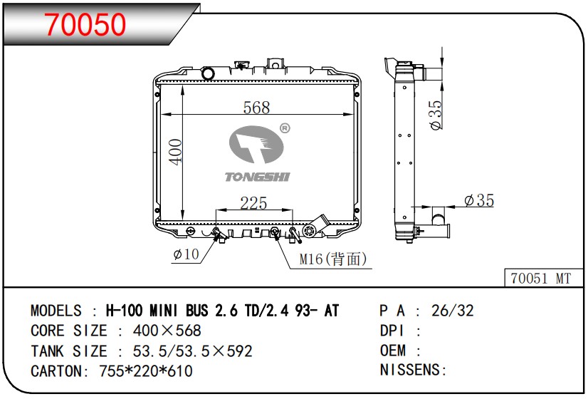 適用于寶馬 E30 320 i 82-93 AT散熱器OEM:1723 825/1719 261