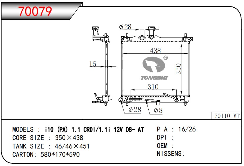 適用于奇瑞瑞虎(新款) MT散熱器 OEM : F1301000B1