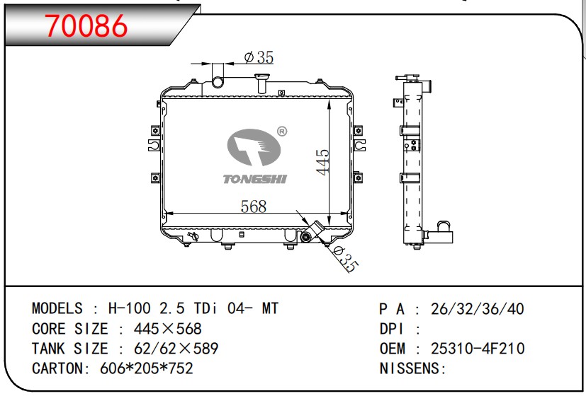 適用于奇瑞瑞虎(新款) MT散熱器 OEM : F1301000B1