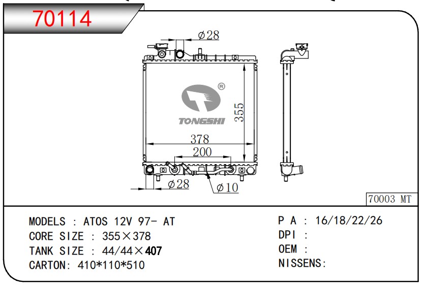 適用于奇瑞瑞虎(新款) MT散熱器 OEM : F1301000B1