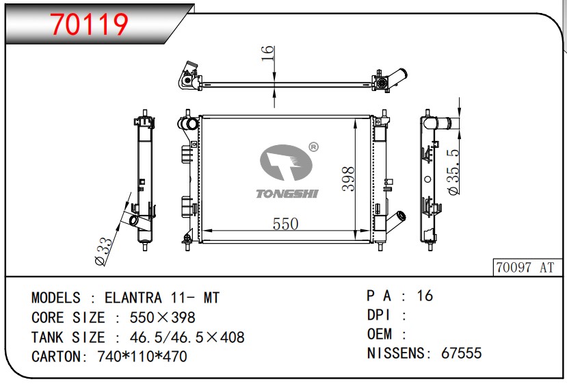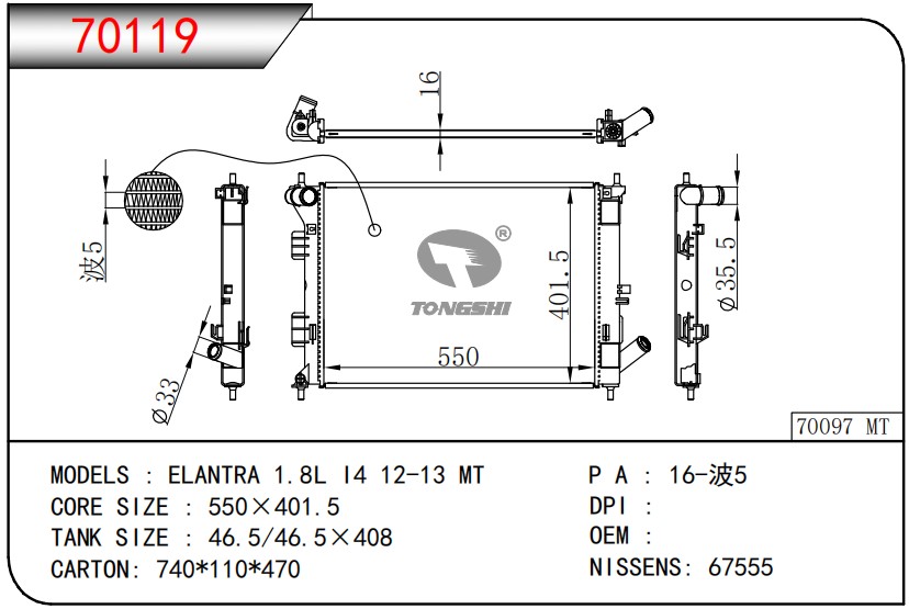 適用于奇瑞瑞虎(新款) MT散熱器 OEM : F1301000B1