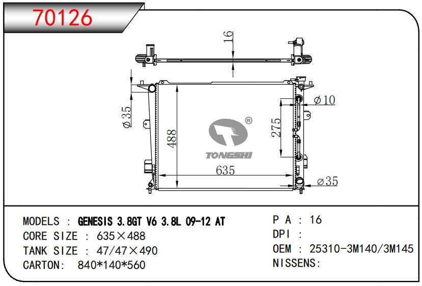 適用于奇瑞瑞虎(新款) MT散熱器 OEM : F1301000B1