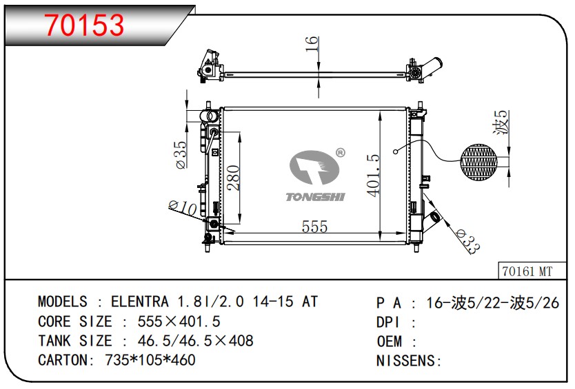 適用于奇瑞瑞虎(新款) MT散熱器 OEM : F1301000B1