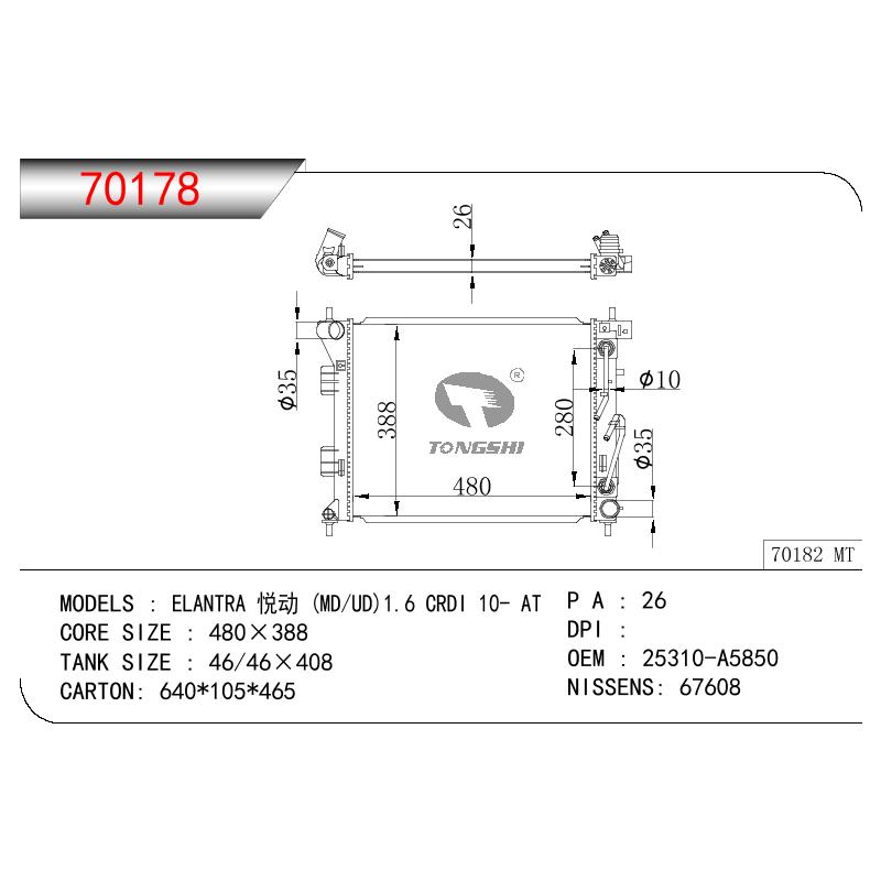 適用于奇瑞瑞虎(新款) MT散熱器 OEM : F1301000B1
