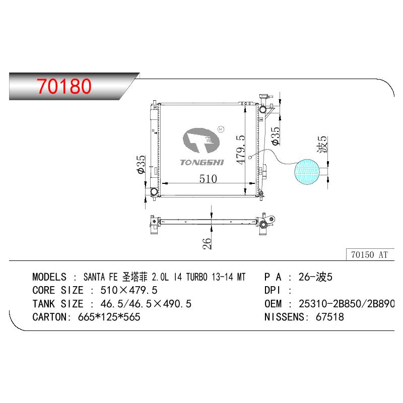 適用于奇瑞瑞虎(新款) MT散熱器 OEM : F1301000B1