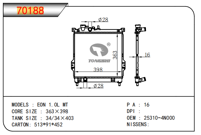 適用于奇瑞瑞虎(新款) MT散熱器 OEM : F1301000B1
