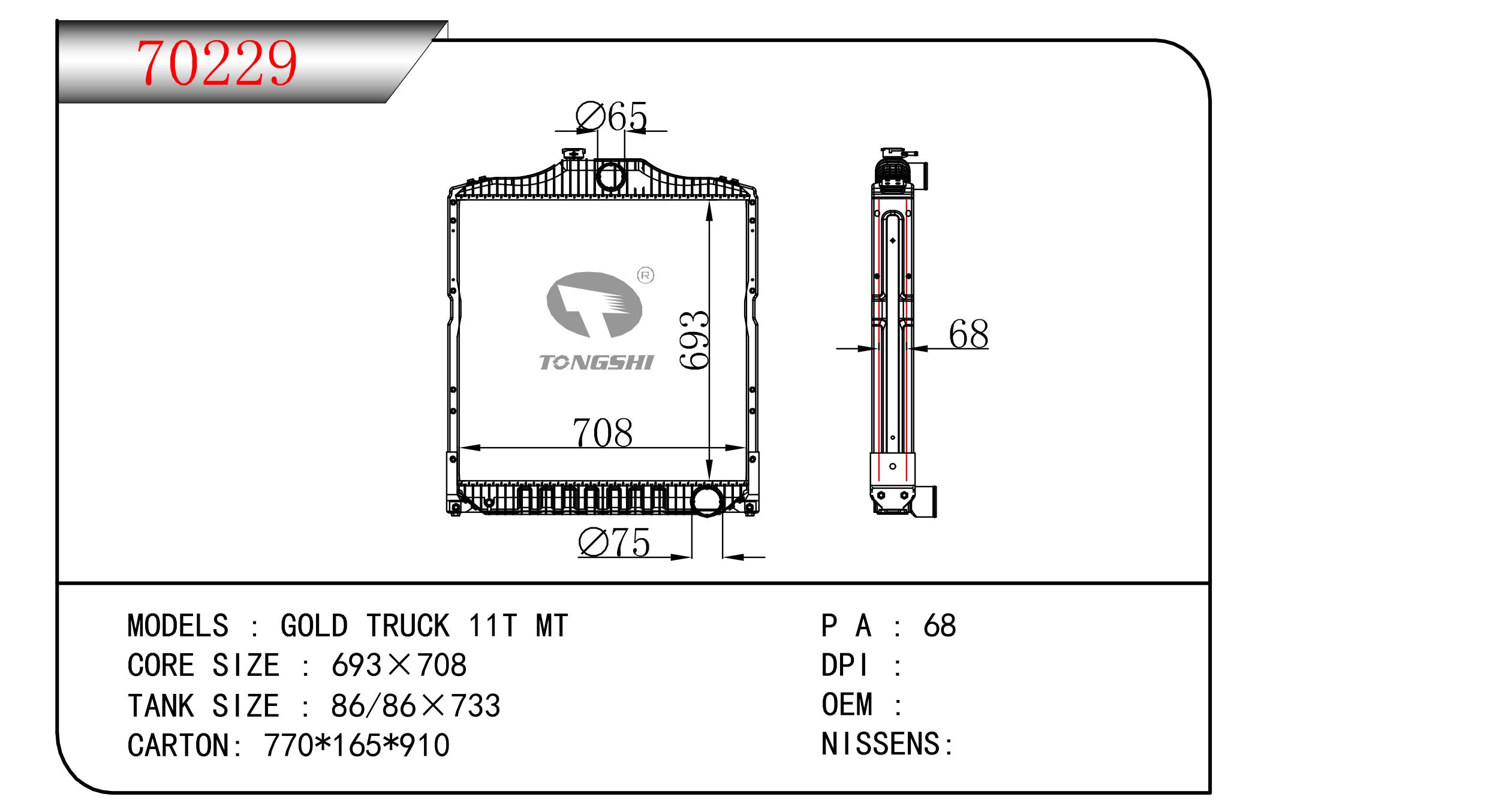 適用于奇瑞瑞虎(新款) MT散熱器 OEM : F1301000B1