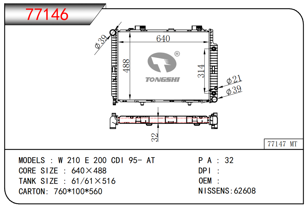 適用于寶馬 E30 320 i 82-93 AT散熱器OEM:1723 825/1719 261