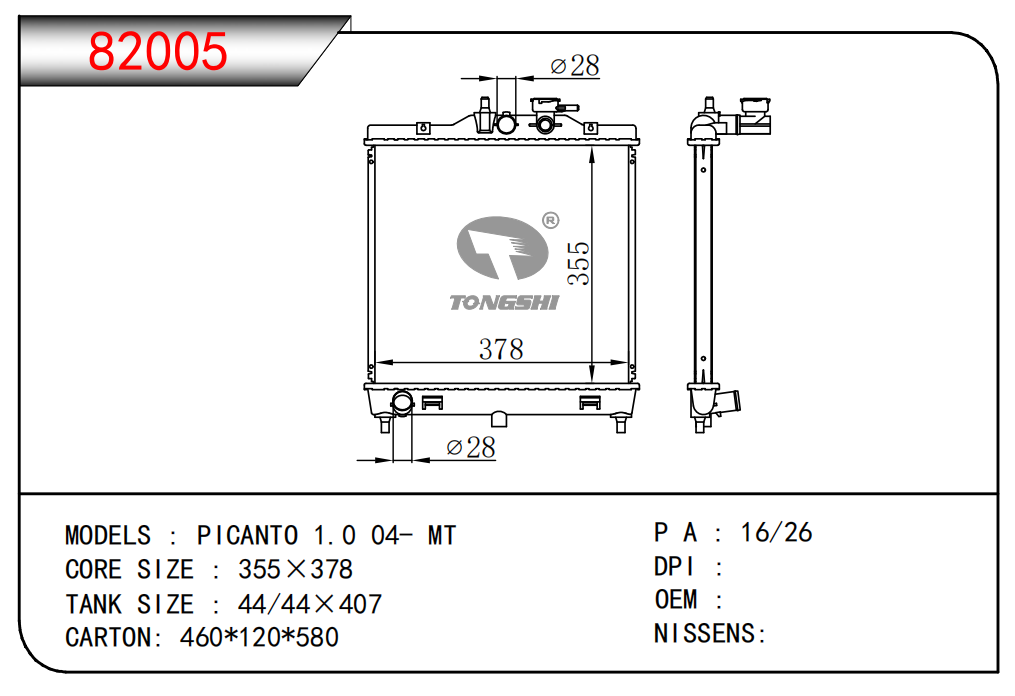 適用于奇瑞瑞虎(新款) MT散熱器 OEM : F1301000B1