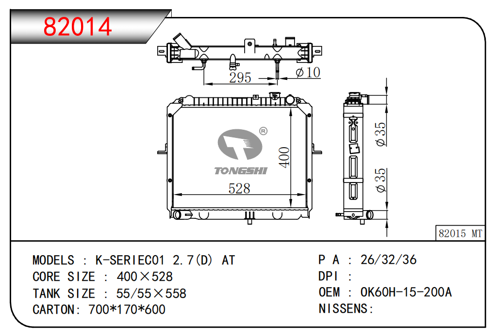 適用于奇瑞瑞虎(新款) MT散熱器 OEM : F1301000B1