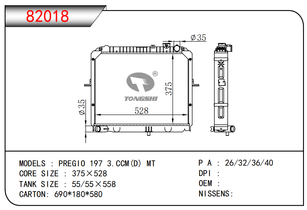 適用于奇瑞瑞虎(新款) MT散熱器 OEM : F1301000B1