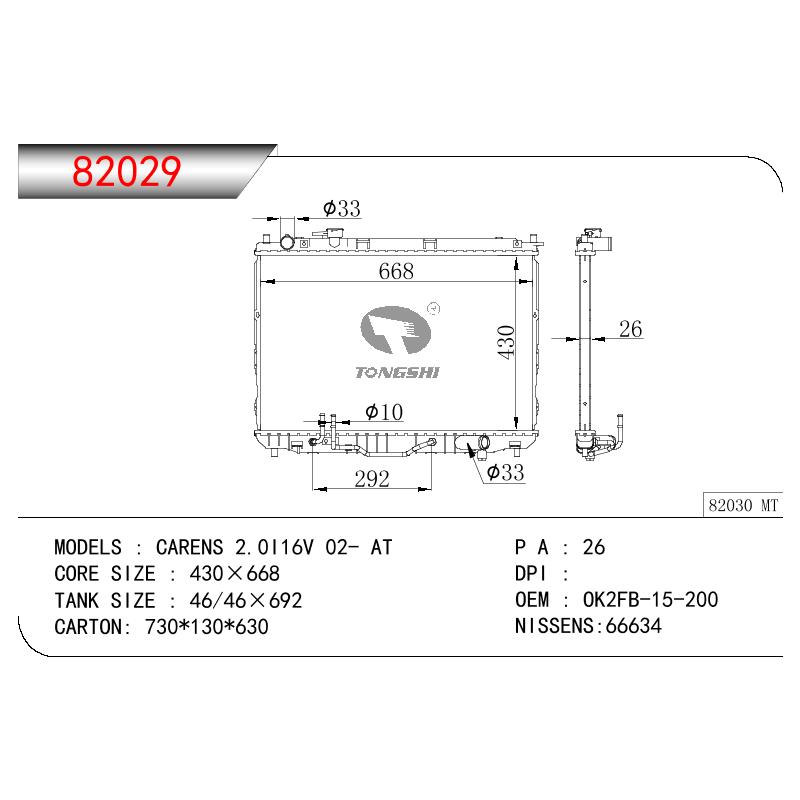 適用于奇瑞瑞虎(新款) MT散熱器 OEM : F1301000B1