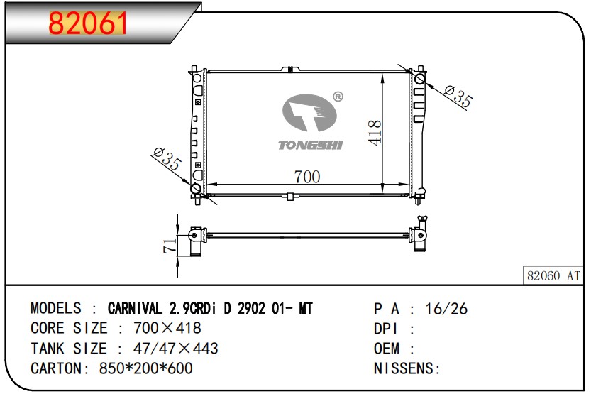 適用于奇瑞瑞虎(新款) MT散熱器 OEM : F1301000B1