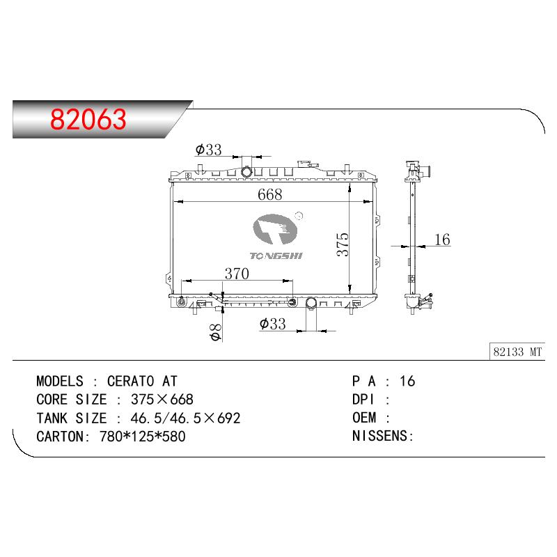 適用于奇瑞瑞虎(新款) MT散熱器 OEM : F1301000B1
