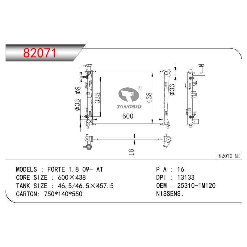 適用于奇瑞瑞虎(新款) MT散熱器 OEM : F1301000B1