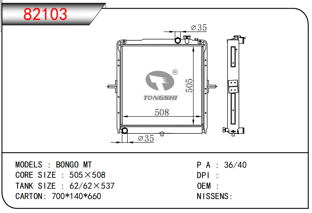 適用于寶馬 E30 320 i 82-93 AT散熱器OEM:1723 825/1719 261