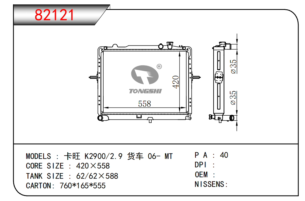 適用于奇瑞瑞虎(新款) MT散熱器 OEM : F1301000B1