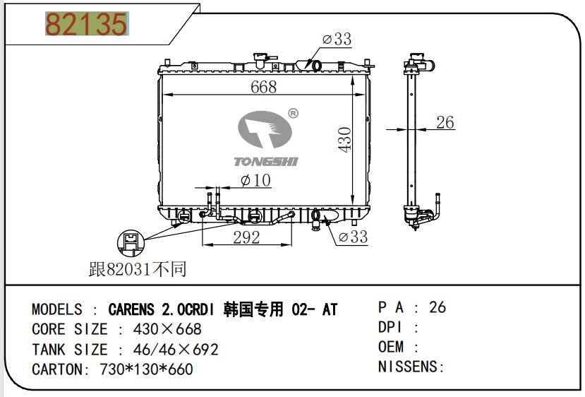 適用于奇瑞瑞虎(新款) MT散熱器 OEM : F1301000B1
