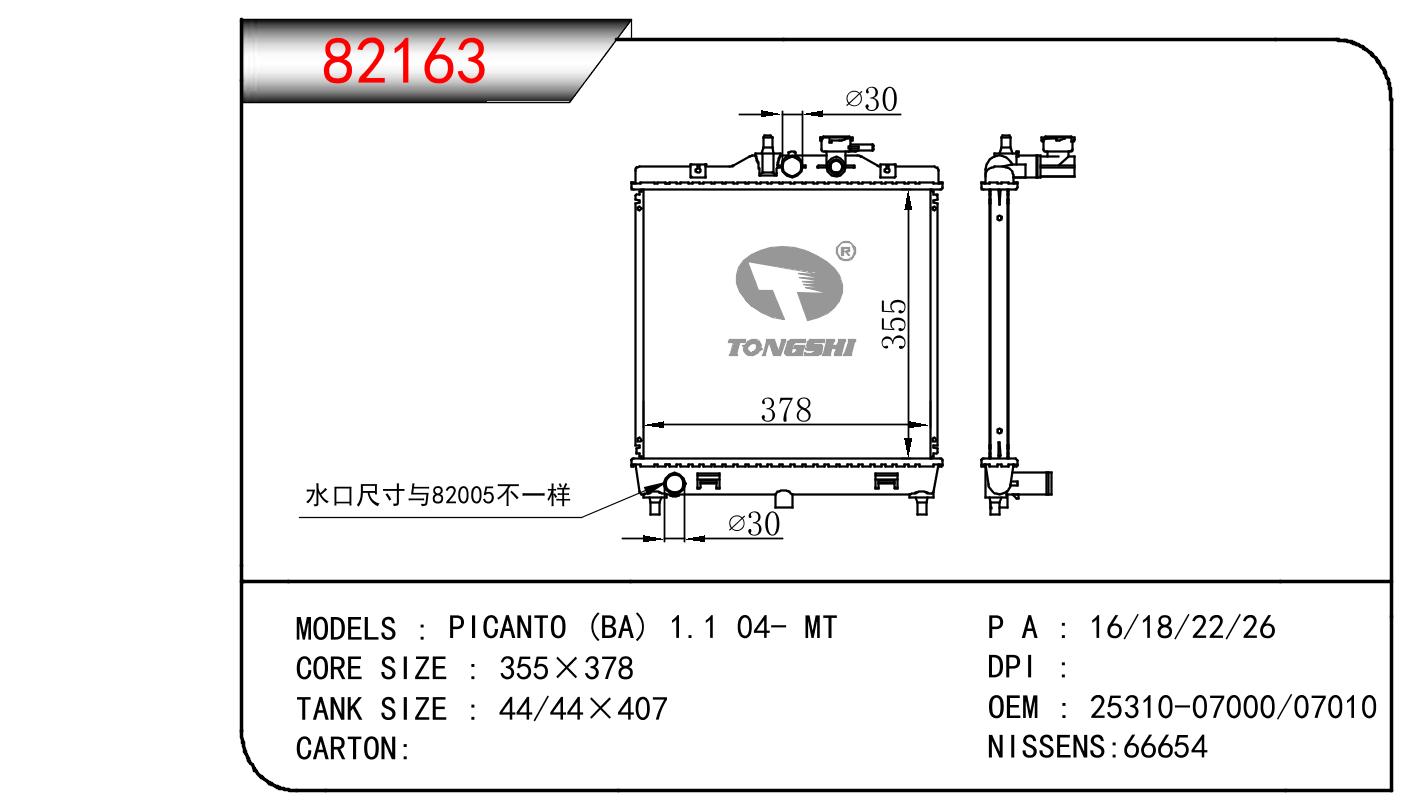 適用于奇瑞瑞虎(新款) MT散熱器 OEM : F1301000B1
