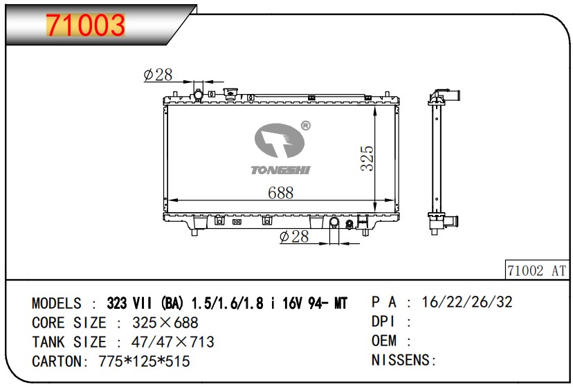 適用于寶馬 E30 320 i 82-93 AT散熱器OEM:1723 825/1719 261