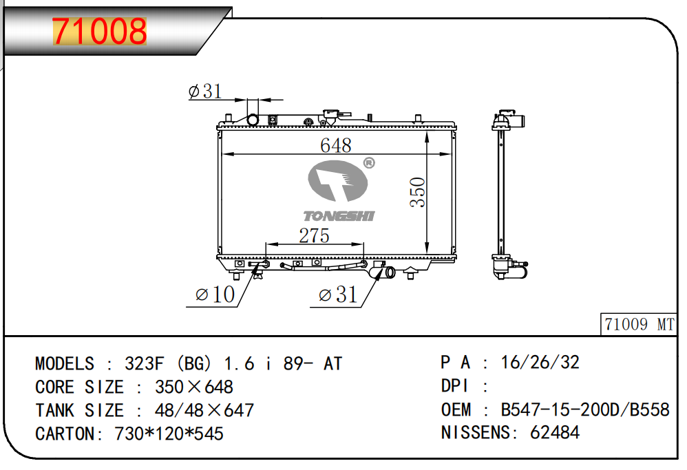 適用于奇瑞瑞虎(新款) MT散熱器 OEM : F1301000B1