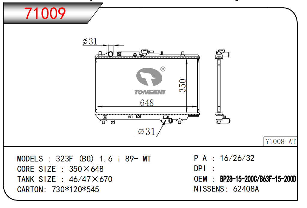適用于寶馬 E30 320 i 82-93 AT散熱器OEM:1723 825/1719 261