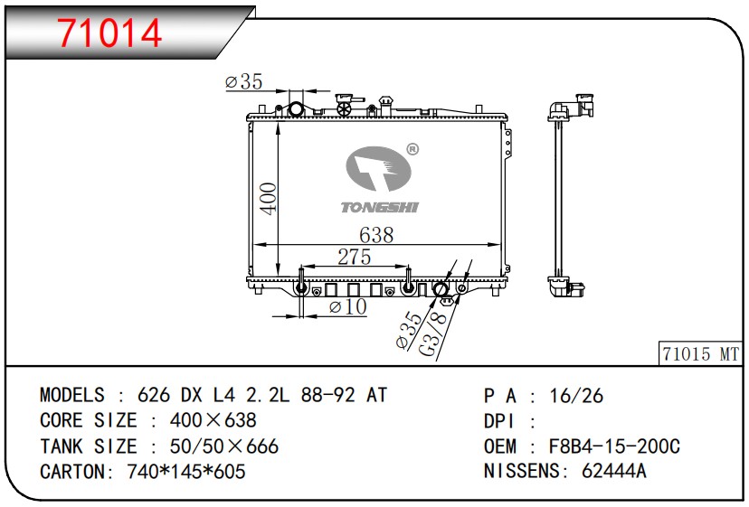 適用于奇瑞瑞虎(新款) MT散熱器 OEM : F1301000B1