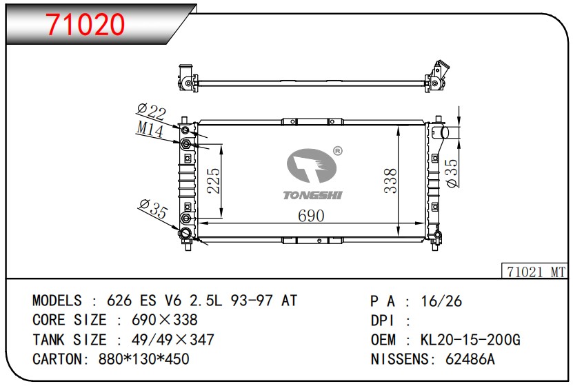 適用于奇瑞瑞虎(新款) MT散熱器 OEM : F1301000B1