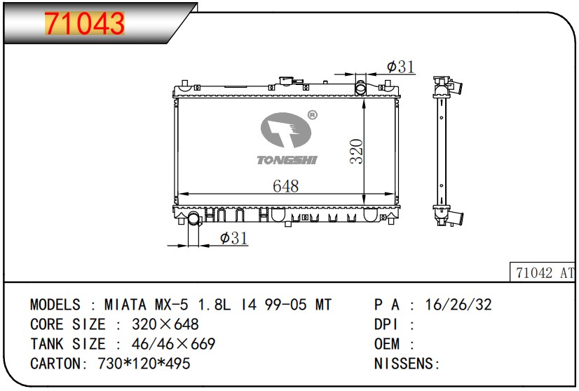 適用于奇瑞瑞虎(新款) MT散熱器 OEM : F1301000B1