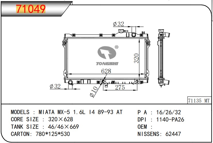 適用于奇瑞瑞虎(新款) MT散熱器 OEM : F1301000B1
