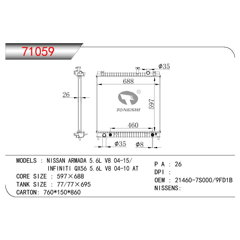 適用于奇瑞瑞虎(新款) MT散熱器 OEM : F1301000B1