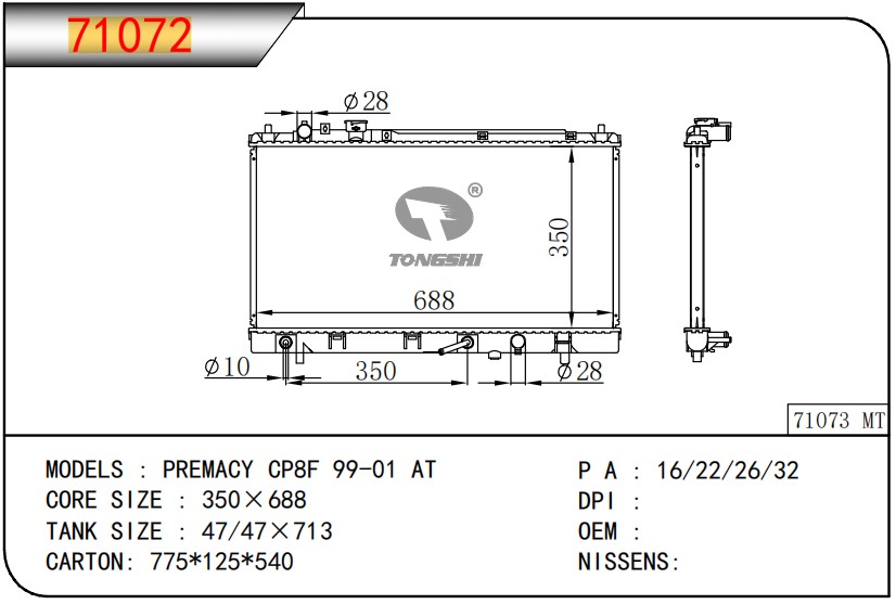 適用于奇瑞瑞虎(新款) MT散熱器 OEM : F1301000B1