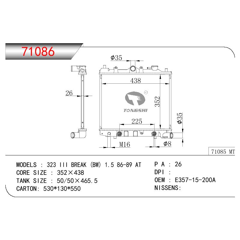 適用于寶馬 E30 320 i 82-93 AT散熱器OEM:1723 825/1719 261