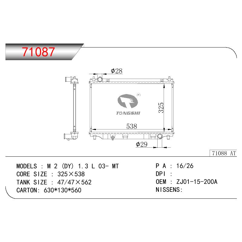 適用于奇瑞瑞虎(新款) MT散熱器 OEM : F1301000B1