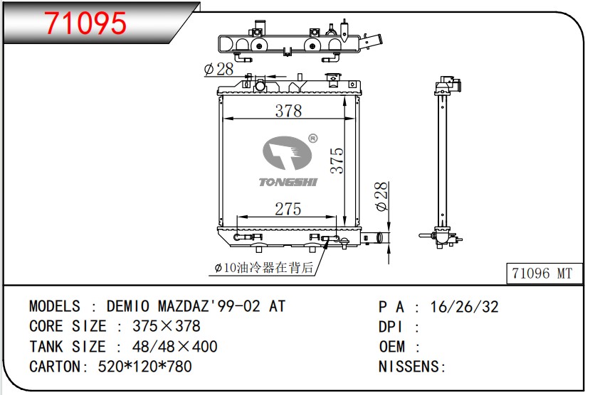 適用于寶馬 E30 320 i 82-93 AT散熱器OEM:1723 825/1719 261