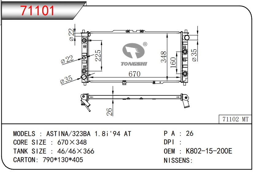 適用于奇瑞瑞虎(新款) MT散熱器 OEM : F1301000B1