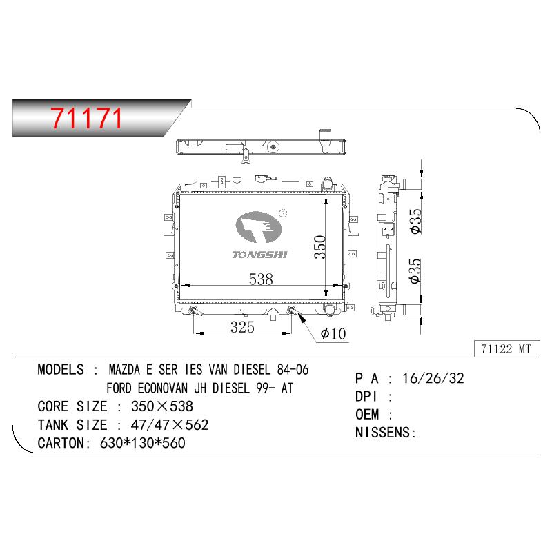 適用于奇瑞瑞虎(新款) MT散熱器 OEM : F1301000B1