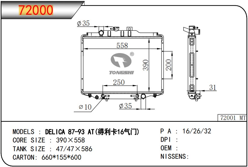 適用于寶馬 E30 320 i 82-93 AT散熱器OEM:1723 825/1719 261