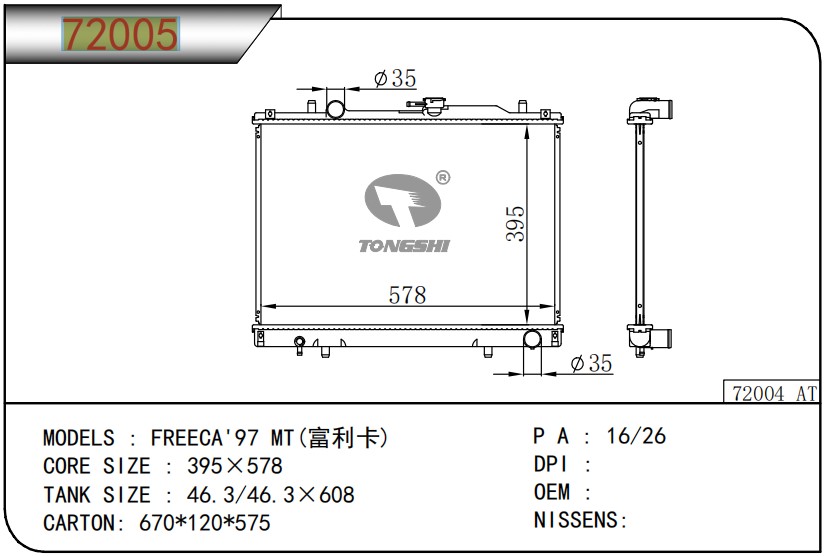 適用于奇瑞瑞虎(新款) MT散熱器 OEM : F1301000B1