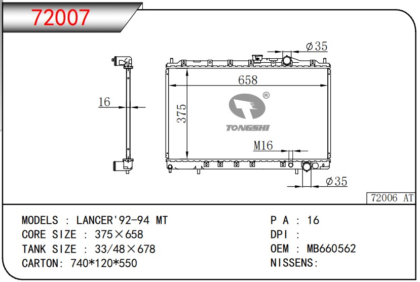 適用于奇瑞瑞虎(新款) MT散熱器 OEM : F1301000B1