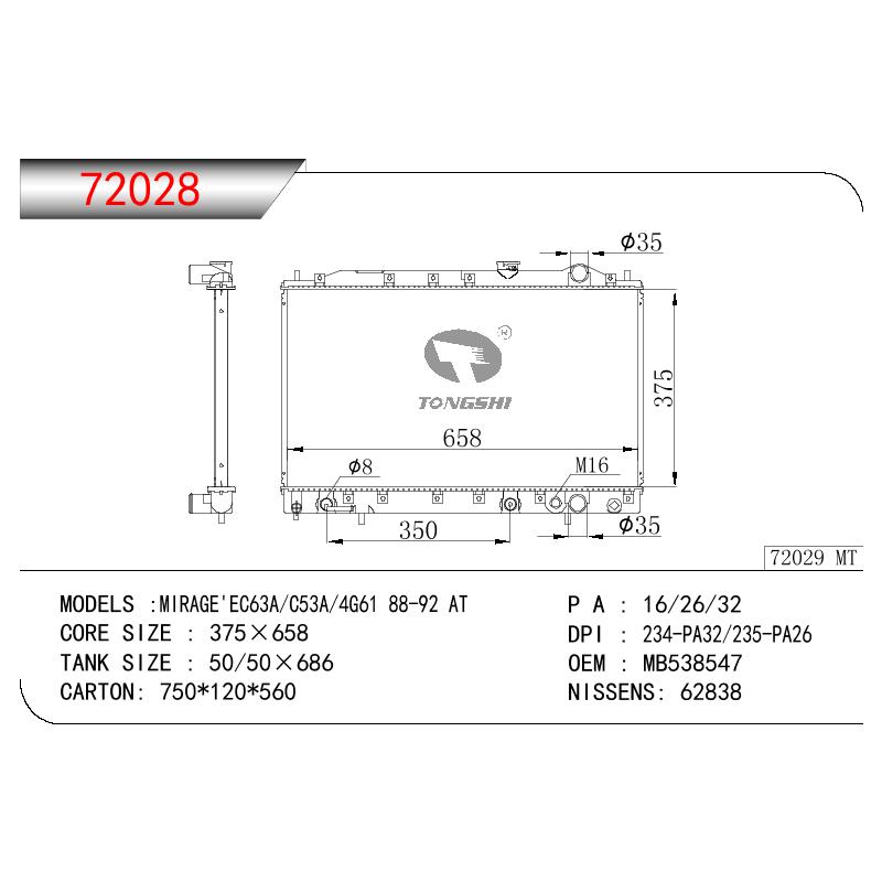 適用于奇瑞瑞虎(新款) MT散熱器 OEM : F1301000B1