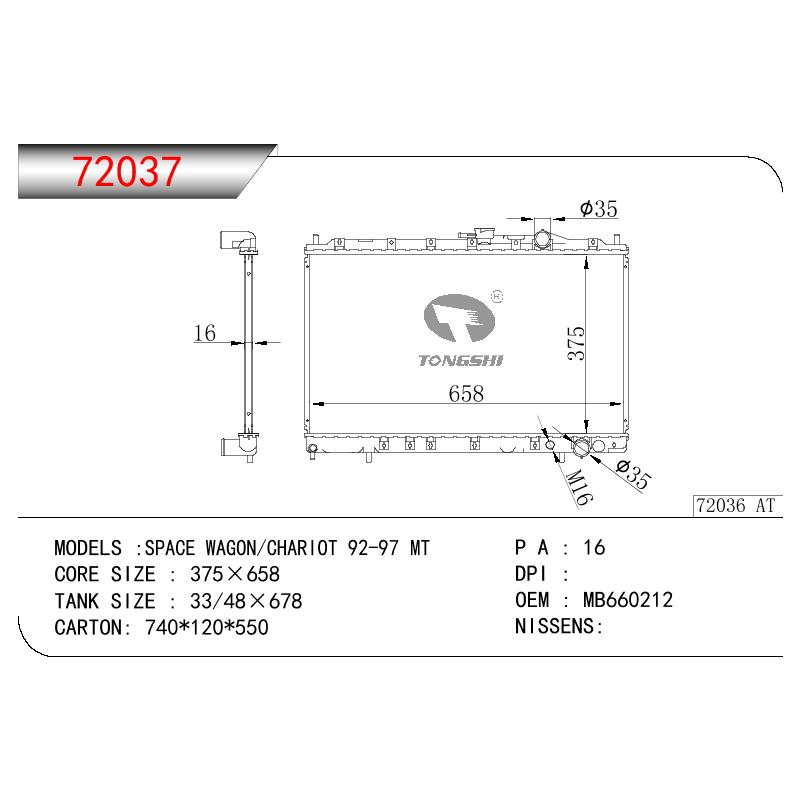 適用于奇瑞瑞虎(新款) MT散熱器 OEM : F1301000B1