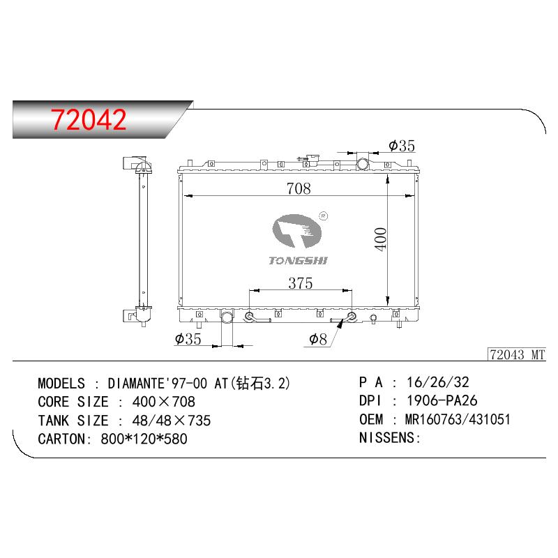 適用于奇瑞瑞虎(新款) MT散熱器 OEM : F1301000B1