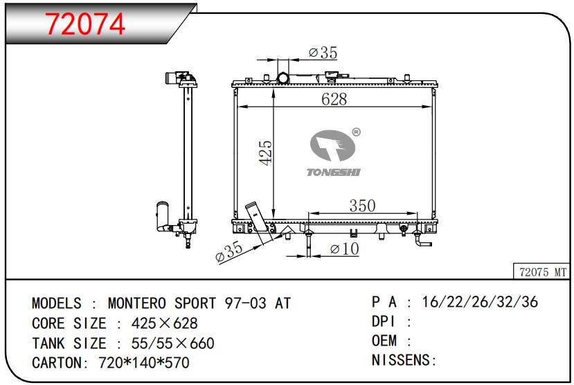 適用于奇瑞瑞虎(新款) MT散熱器 OEM : F1301000B1