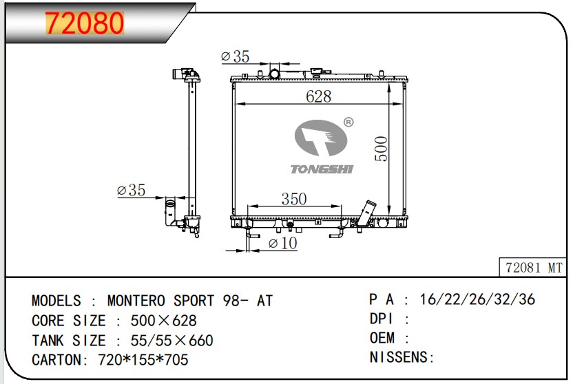 適用于寶馬 E30 320 i 82-93 AT散熱器OEM:1723 825/1719 261