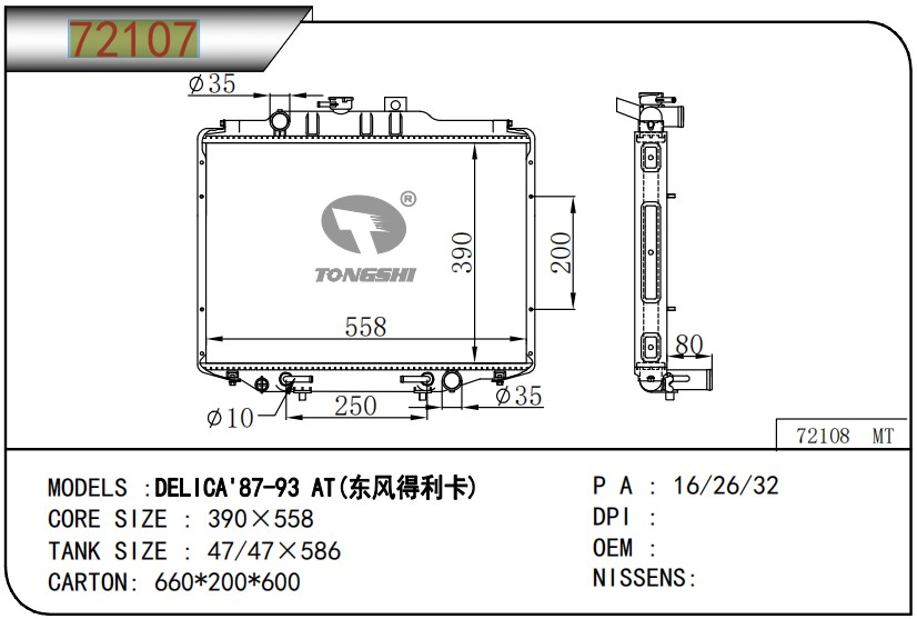 適用于寶馬 E30 320 i 82-93 AT散熱器OEM:1723 825/1719 261