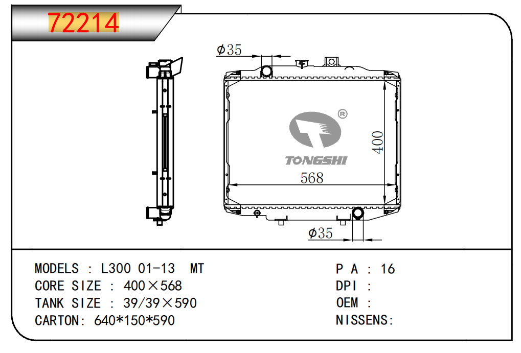 適用于奇瑞瑞虎(新款) MT散熱器 OEM : F1301000B1